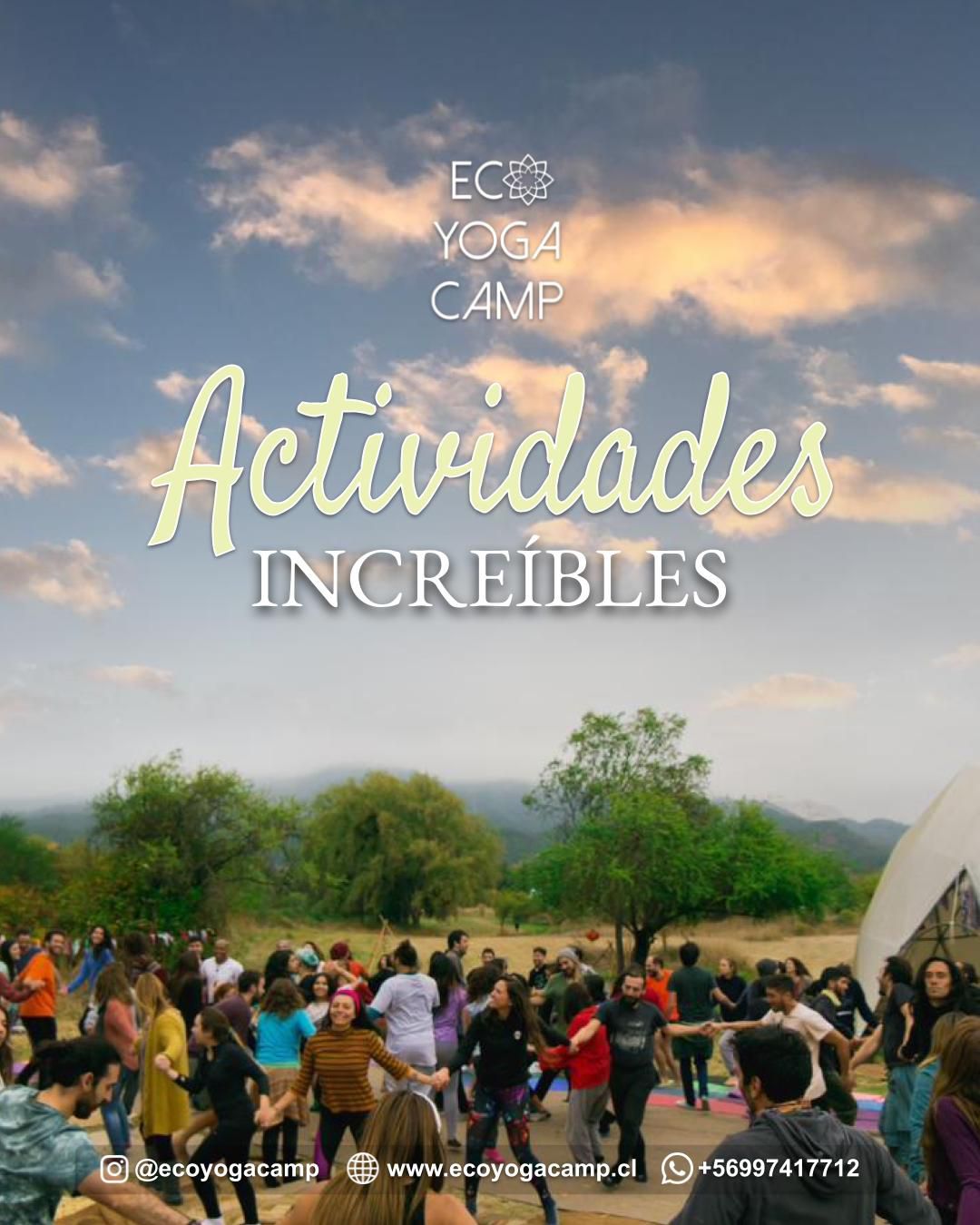 ¡Prepárate para disfrutar de un fin de semana junto a la tribu EcoYogaCamp! 🧘♂️ Desde el 6 al 8 de Diciembre, únete a nosotros en Nina Moza, en la V Región, para un retiro mágico lleno de increíbles actividades, deliciosa comida con sabores del mundo y una estadía inolvidable con piscinas, salón, sala de juego y más, todo rodeado de un bello entorno natural 🤩